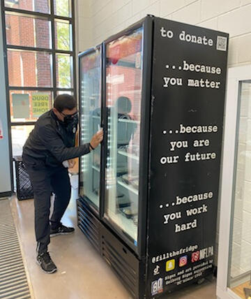 Students, seniors and others in need are invited to walk up to any of our refrigerators and help themselves. No questions. No limits.